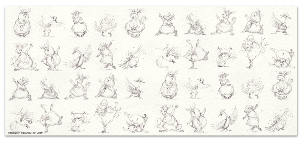 The Endpapers are one of my favourite things in the printed book. We have used the original character sketches to create these. In these you'll see my lines of action and all my scribbles. These are the lines that give these a 'life' that cannot be re-created when you draw them again. If you look closely, there are two different characters in the back Endpapers compared to the front. Can you pick who they are? You'll have to read the story to find out. Enjoy!